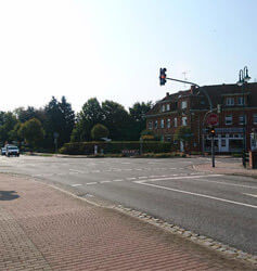 Nun endet der Fußgängerweg und Sie biegen links in die Straße „Uns Hüsung“ ein. Folgen Sie auf der linken Straßenseite 10 Meter dem Bordstein, bis dieser abgeflacht ist.